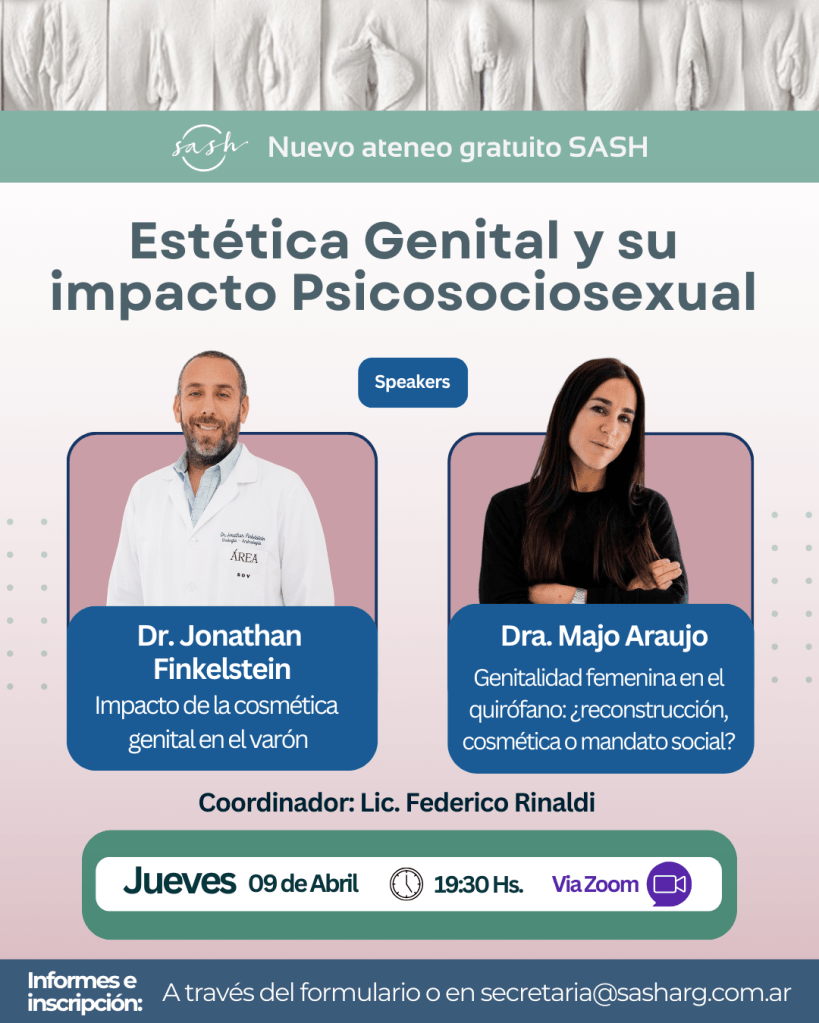 Dirigido a psicólogos, médicos, sexólogos y profesionales de la salud en general. Modalidad 100% online y sincrónica por Zoom. Inicia en abril y se dicta hasta diciembre 2026. Matrícula 50% bonificada durante enero.